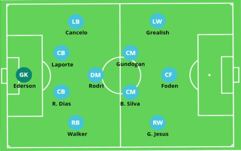 - Đặc điểm: Sự kết hợp giữa khả năng kiểm soát bóng đỉnh cao và tính linh hoạt về chiến thuật. Các tiền vệ như Kevin De Bruyne, Bernardo Silva và Rodri tạo ra sự áp đảo tuyệt đối ở trung tuyến.