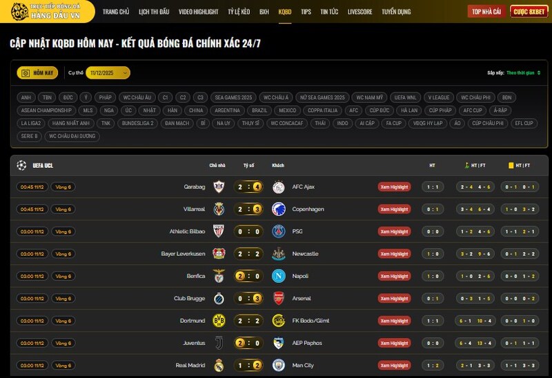 Trên điện thoại, trang cũng hiển thị rất gọn và thao tác dễ dàng. Với anh em thích vừa uống cà phê vừa xem kết quả hay xem nhanh highlight, giao diện này thực sự là “điểm cộng lớn”.