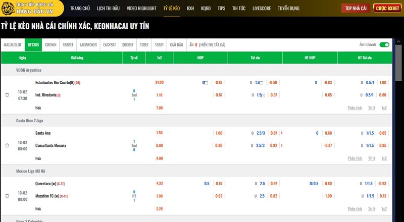 - Một trang khác để coi kèo,