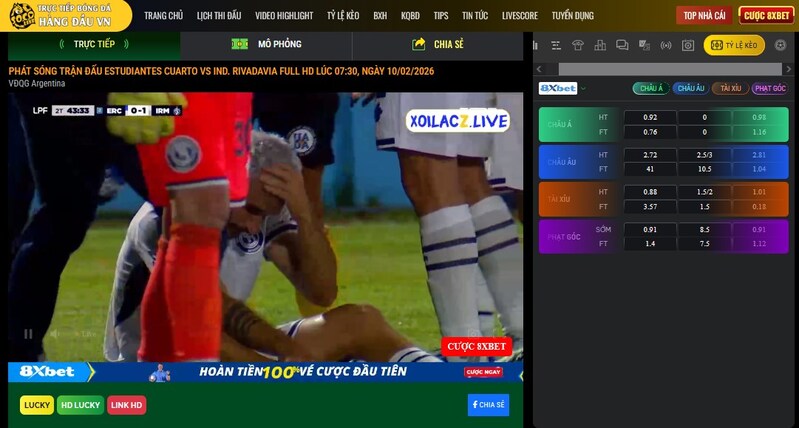 - Đang xem trực tiếp – kéo xuống thấy ngay bảng kèo.