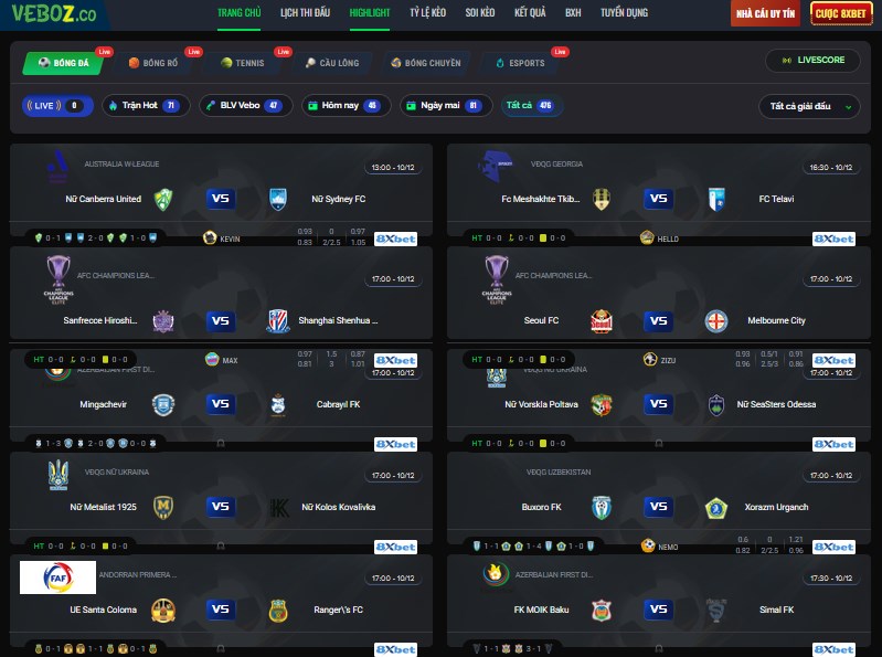 Mình không tham gia cá cược, nhưng mình biết có rất nhiều anh em thích xem kèo trước trận để phân tích. Vebo cung cấp phần tỷ lệ cược, nhận định và soi kèo khá chi tiết: