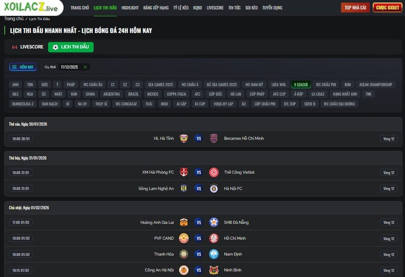 Ngoài trực tiếp bóng đá, thứ khiến mình gắn bó với Xoilac lâu dài chính là phần lịch thi đấu bóng đá Việt Nam. Nếu anh em là fan V.League, ĐTQG, U23, hay bóng đá nữ Việt Nam thì chắc chắn sẽ thích phần này.
